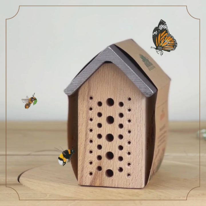 Grâce à ses trous de tailles variées, l'hôtel à abeilles offre un abri sûr à de nombreuses abeilles sauvages, telles que les abeilles masquées, les abeilles maçonnes et les abeilles ciseaux. Notre hôtel à insectes contribue ainsi à la préservation de la biodiversité.