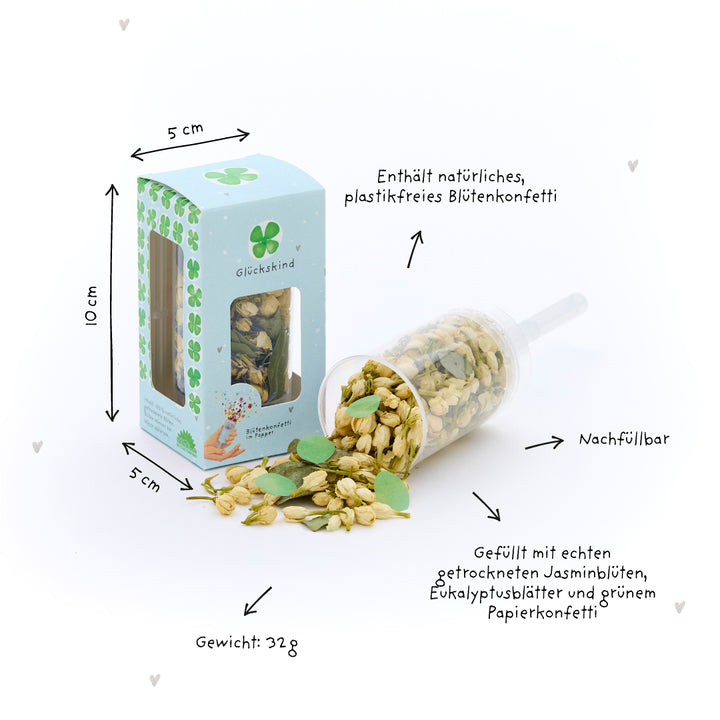 🍀 Enfant chanceux - avec une dose supplémentaire de chance :Que ce soit pour une remise de diplôme, le stress des examens, un nouvel emploi ou un déménagement, cette fleur à confettis avec l'inscription « Bonne chance, enfant chanceux » est le cadeau idéal pour tous ceux qui s'apprêtent à entamer une nouvelle vie. Pleine de courage, d'énergie positive et d'une touche de bonheur en confettis.