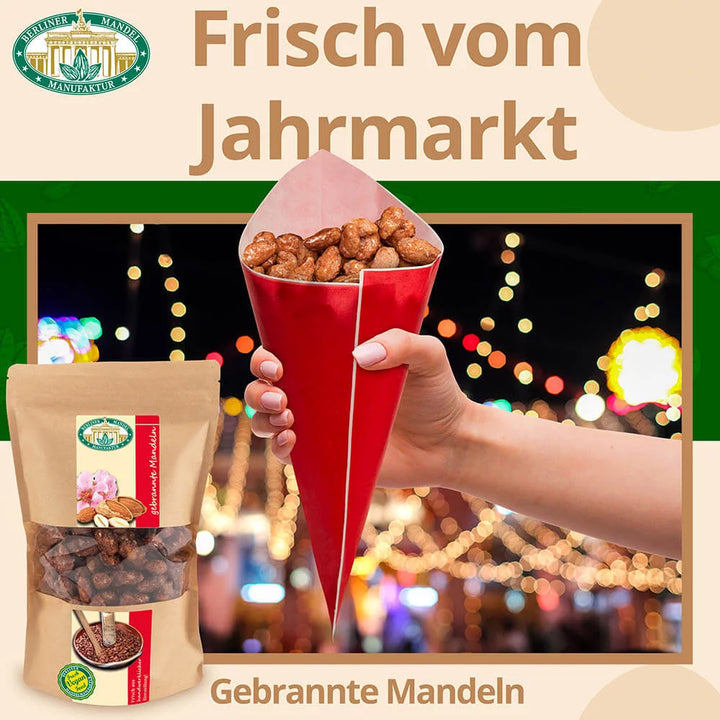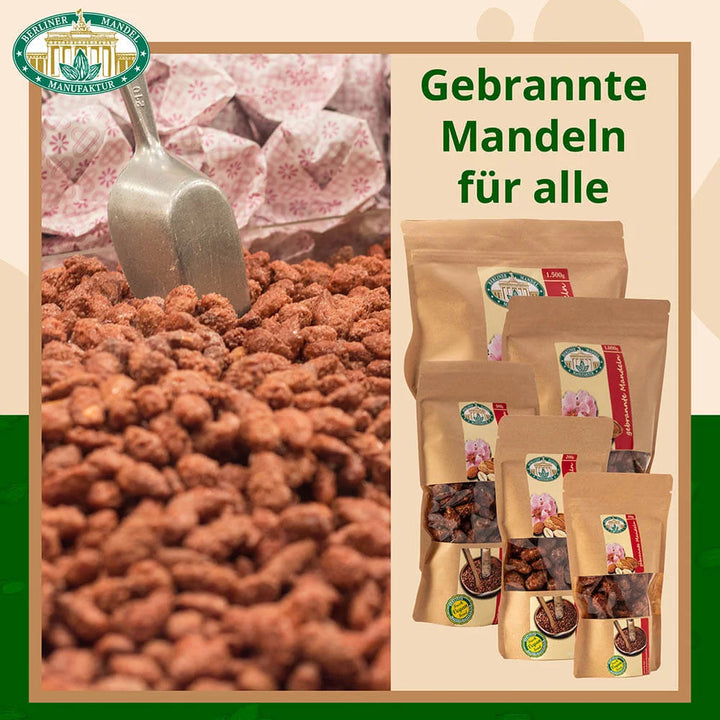 La fabrique d'amandes berlinoise fait entrer l'ambiance des marchés de Noël et des foires dans votre salon, et ce depuis de nombreuses années. Ce qui a vu le jour à la foire est aujourd'hui une entreprise familiale traditionnelle de quatrième génération, passionnée par la production artisanale d'amandes et de noix grillées.