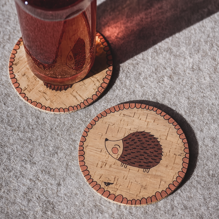 Le dessous de verre « Hérisson », imprimé avec amour par Clarissakork, apporte une touche d'idylle forestière à votre table. Que ce soit pour une petite boisson désaltérante ou un copieux petit-déjeuner en famille, ce matériau naturel protège efficacement des taches et des rayures et est un véritable plaisir à utiliser.