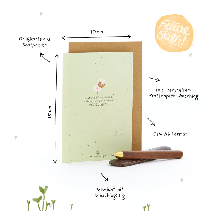 Durable et sans plastique:La carte est faite de papier ensemencé compostable, l'enveloppe est en papier kraft et la pochette est biodégradable - une salutation humoristique qui non seulement vous fait rire, mais vous fait également fleurir.