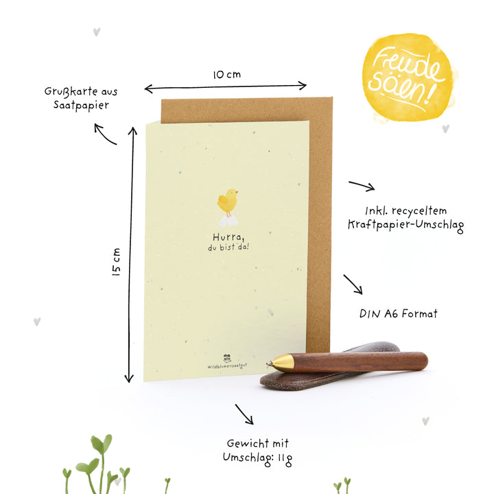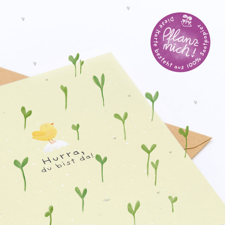 Durable et sans plastique:La carte est faite de papier ensemencé compostable, l'enveloppe est en papier kraft et la pochette est biodégradable - une salutation spéciale et durable pour la naissance.