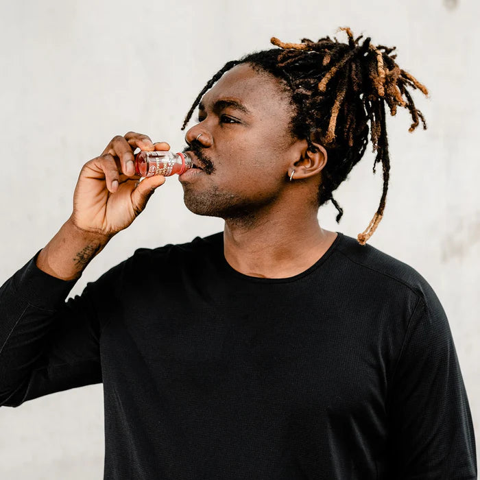 La différence est simple : alors que d'autres mélangent n'importe quel jus avec un peu de concentré de gingembre, nous embouteillons nos shots de gingembre avec de vrais morceaux. Ceux-ci offrent non seulement une saveur exceptionnellement délicieuse et intense, mais aussi une expérience de dégustation tangible.