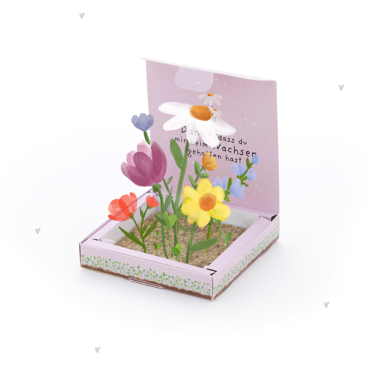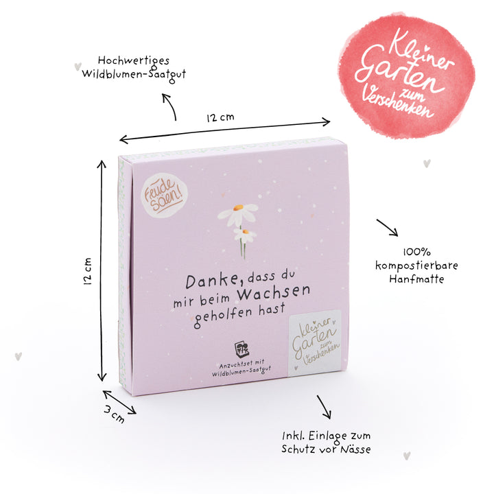 Un cadeau qui continue de fleurirLorsque les plantes grandissent, vous pouvez simplement les transplanter avec leurs tapis dans le lit ou dans un pot plus grand - pour une joie durable et un petit souvenir vert.