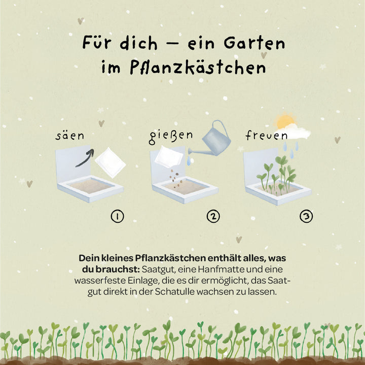 Tout inclusLe kit contient des graines de trèfle de haute qualité, un tapis de culture écologique 100 % chanvre et une fine doublure pour protéger de l'humidité. Le tapis en chanvre assure un microclimat sain et est entièrement compostable.