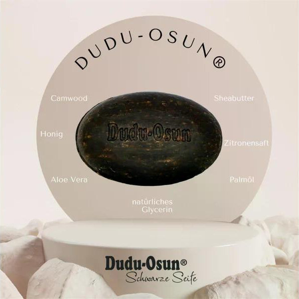 Fabriqué traditionnellement au Nigéria, Dudu Osun® PURE est composé d'ingrédients naturels tels que l'huile de palmiste, la cendre de feuilles de palmier et les cabosses de cacao, pour un nettoyage doux et en profondeur. Le beurre de karité, l'aloe vera, le jus de citron vert et le miel nourrissent la peau et lui confèrent ses propriétés hydratantes.