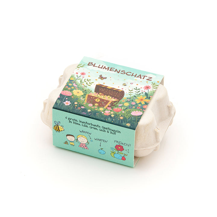 6 bunte Blumenmurmeln im Eierkarton - Blumenschatz