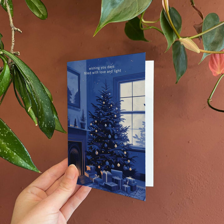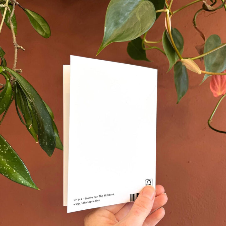 La carte est imprimée en offset sur du papier épais et mat certifié FSC (350 g/m²). L'intérieur est vierge et est accompagné d'une enveloppe en papier kraft recyclé (sans plastique sans emballage extérieur). La carte est au format A6 (14,85 x 10,5 cm).